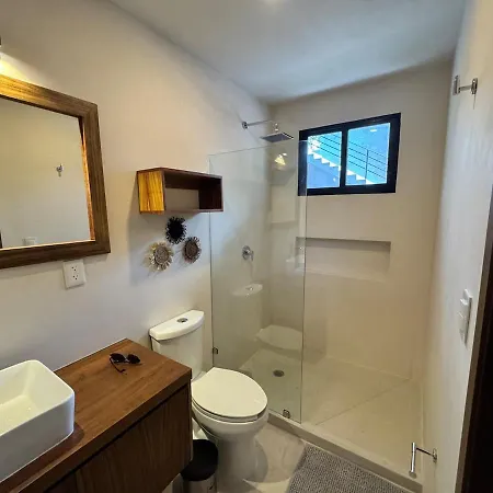 Tulum Jungle Loft With Pool And Rooftop Near Beach And Cenotes And Dowtown! Fast Wifi! Perfect For Expats apartment has a balcony and a seating area, and comforts such as air conditioning. For added convenience, a separate toilet and a shower are available at this accommodation. Furthermore, you can enjoy a hair dryer provided in the bathroom.